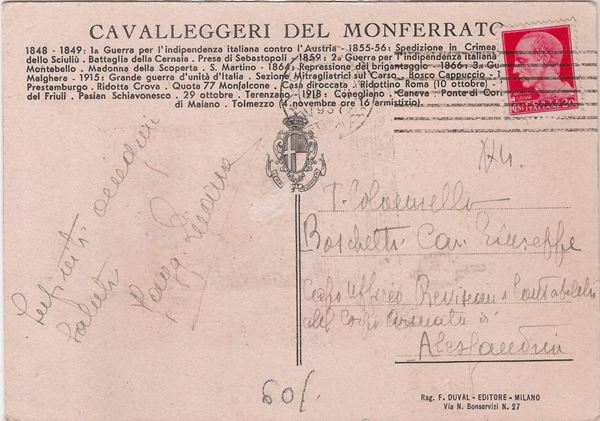 Traveled in 1937. Ed. Rag. E. Duval - Milan. Good condition.