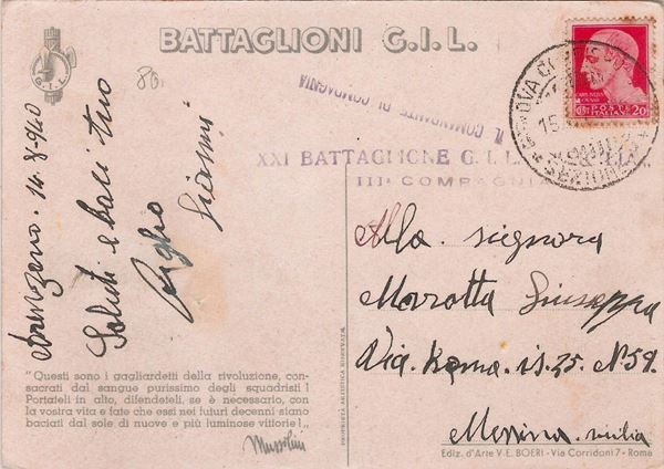 Traveled on 08/14/1940. Illustrator D'Ercoli, ed. art V.E. Boeri, Rome.