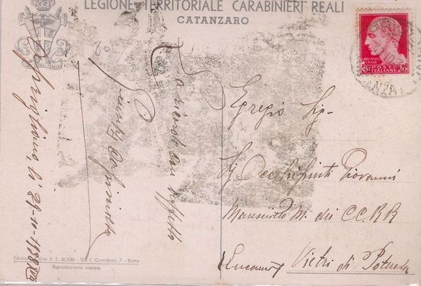 Original postcard of the territorial legion of the Royal Carabinieri Catanzaro