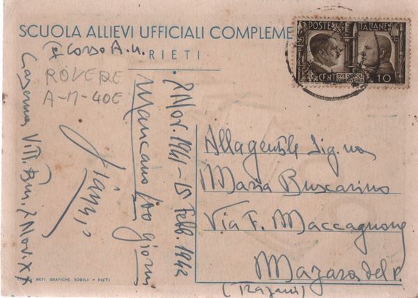 Mak 100, A.U.C. Rieti. Illustrator M.R. Traveled 08/11/1941. Good conditions.