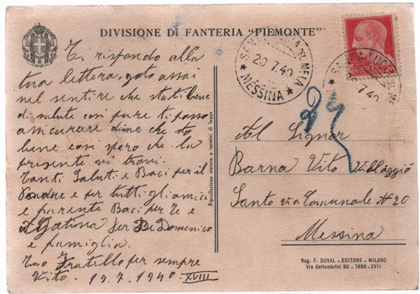 29th Piedmont Infantry Division. Ed. F. Duval Milan. Traveled.