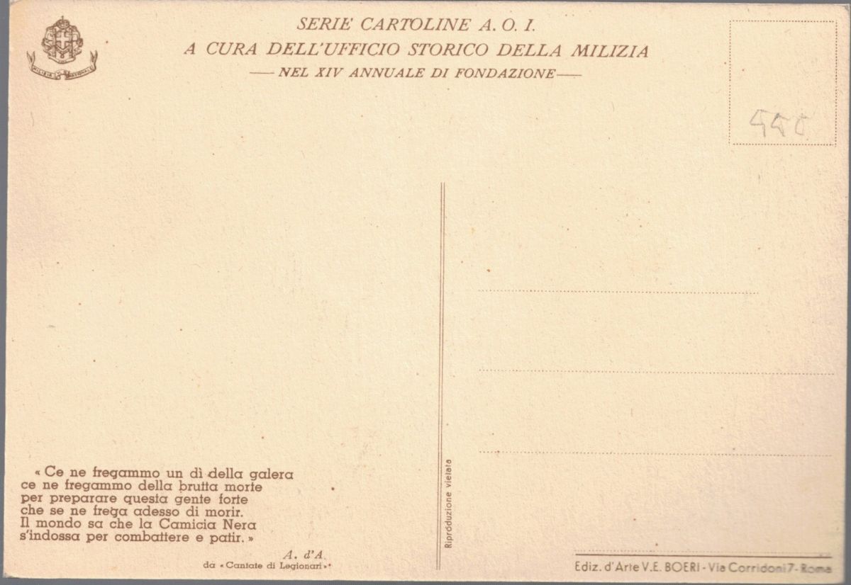 Edited by the Militia historical office in the XIV - Annual foundation "& nbsp; Illustration Clemente Tafuri. Ed. art VEBoeri - Rome. Not circulated. Excellent condition. & nbsp;