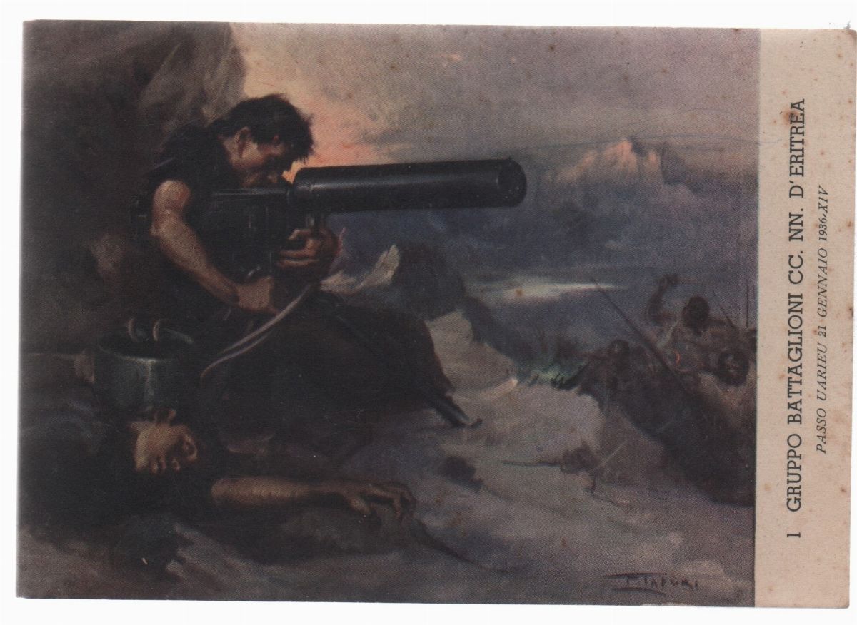 Original A.O.I. postcard battalion group CC.NN. of Eritrea pass variu