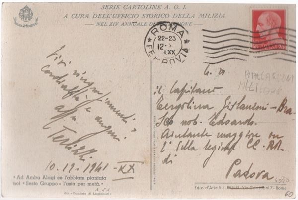 The Auction House Art La Rosa offers for sale postcards of the dictatorships of World War II only for the purpose of civic education and defense against unconstitutional or anti-constitutional acts, historical and scientific research and military historian. The bidder undertakes to purchase these works for historical and scientific reasons and for those mentioned above and not for propaganda purposes.