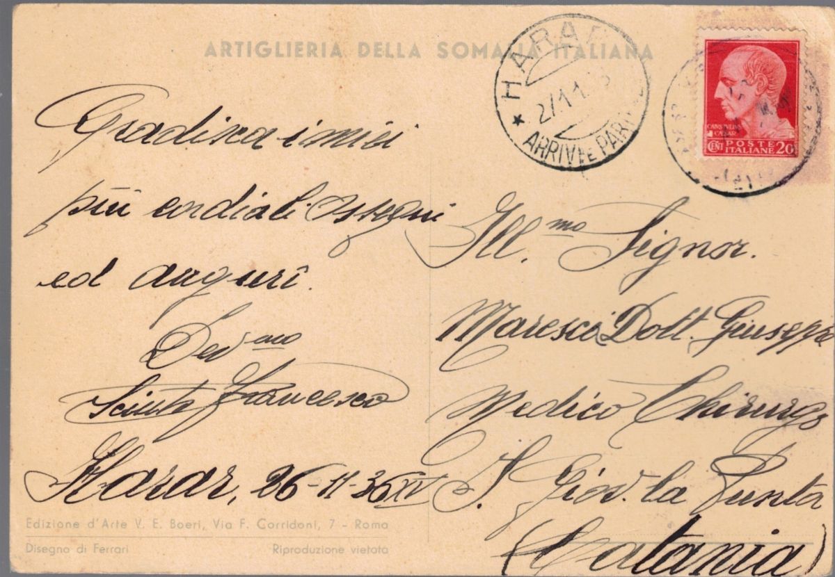 Illustrator Ferrari. Edition of art V.E. Boeri Rome. Traveled 11/27/1936. Excellent condition.