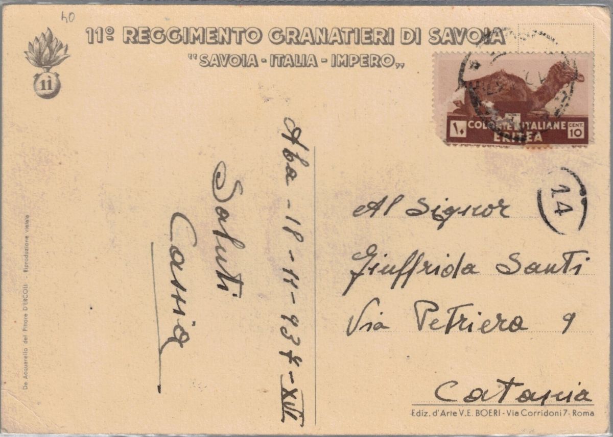 Original colonial postcard 11th Grenadier Regiment of Savoy