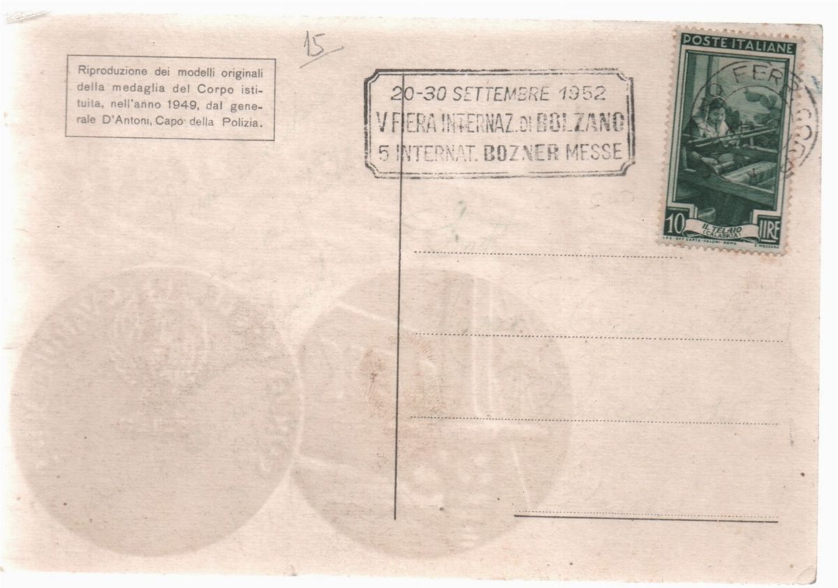 V international fair of Bolzano. Stamped and franked 20-30 September 1952.