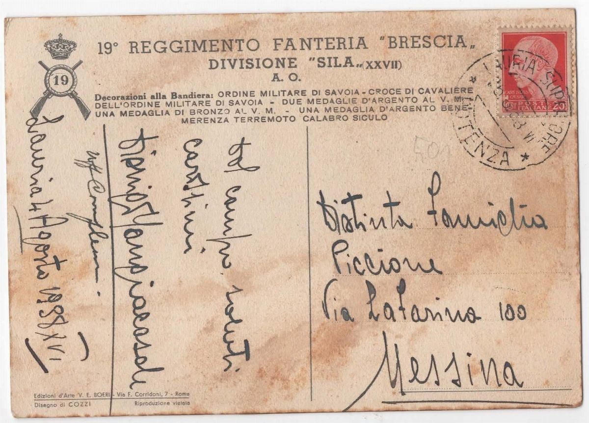 Original postcard 19th Brescia infantry regiment "to overcome is to win", 40s