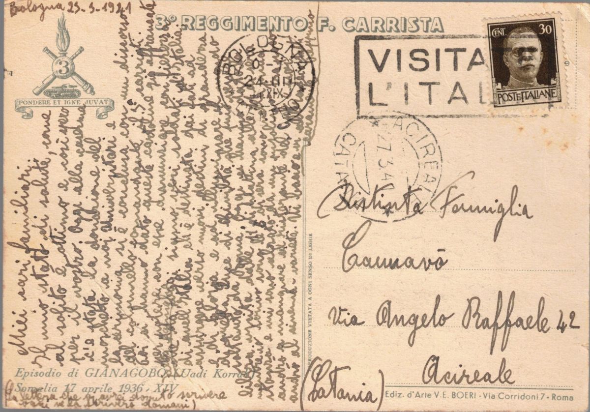 Original postcard 3rd tanker regiment episode of Gianagobo Somalia 17-4-1936