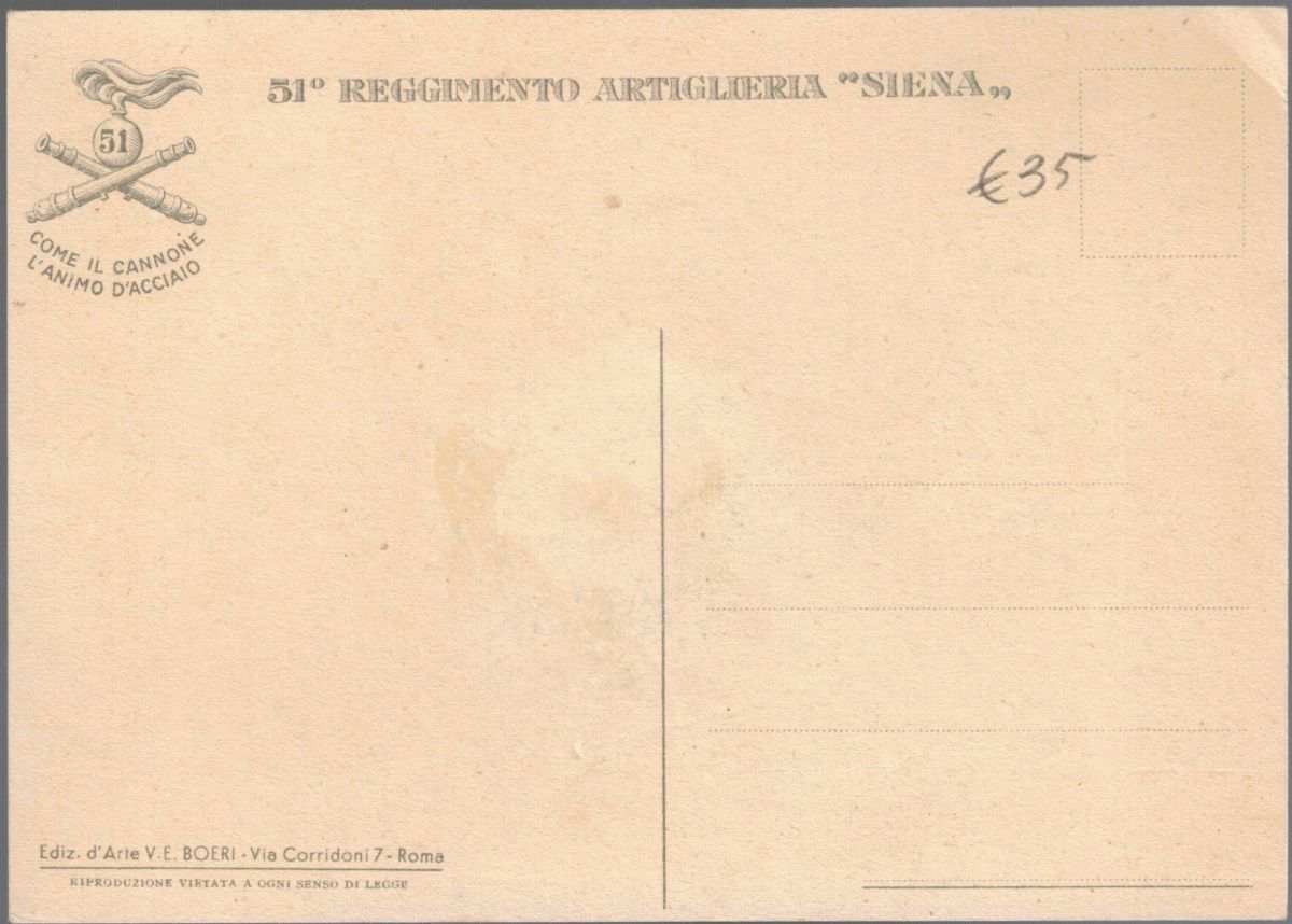 Original postcard 51st artillery regiment "Siena" 1940 c.a. "Like the cannon the soul of steel"
