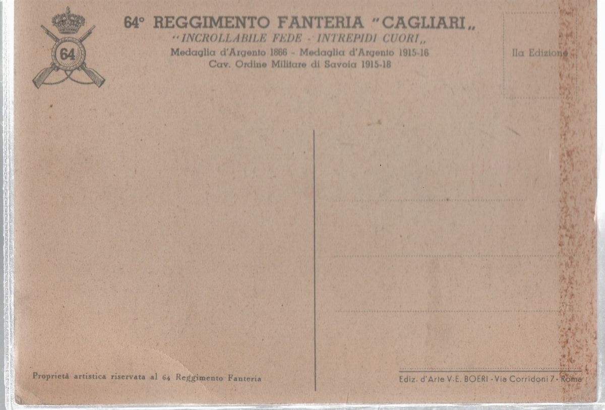 Original postcard 64th Infantry Regiment "Cagliari: unshakable faith, intrepid hearts"
