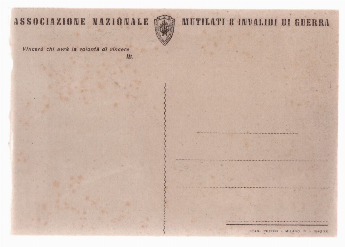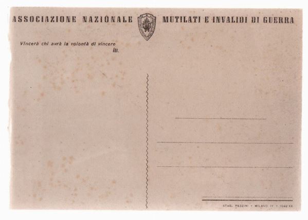 The Auction House Art La Rosa offers for sale postcards of the dictatorships of World War II only for the purpose of civic education and defense against unconstitutional or anti-constitutional acts, of historical research , scientific and military historian. The bidder undertakes to purchase these works for historical and scientific reasons and for those mentioned above and not for propaganda purposes.
