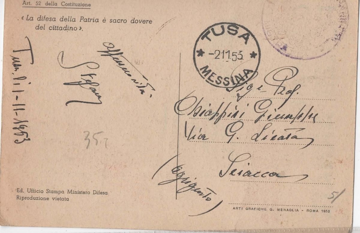 Traveled 02.11.1953. Graphic Arts Edition G. Menaglia - Rome.