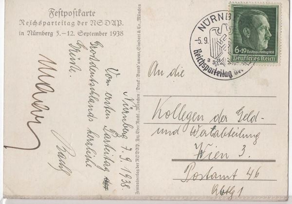 Original postcard from German propaganda Reichsparteitag Nurnberg 5-12 September 1938