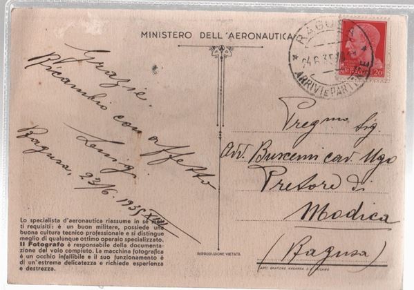 The Auction House Art La Rosa offers for sale postcards of the dictatorships of World War II only for the purposes of civic education and defense against unconstitutional or anti-constitutional acts, historical and scientific research and military historian. The bidder undertakes to purchase these works for historical and scientific reasons and for those mentioned above and not for propaganda purposes.