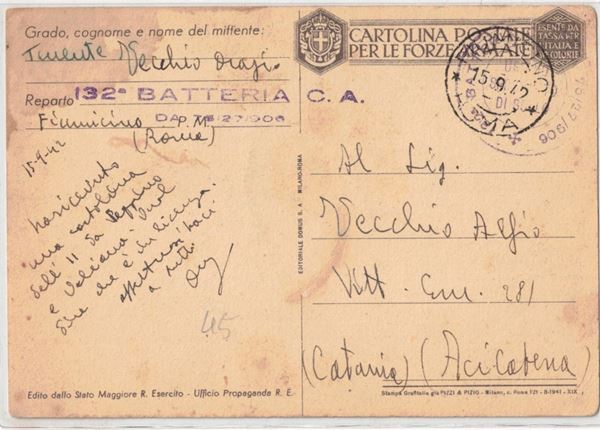 Traveled 09/15/1942. Grafitalia Pizzi print & amp; Pizio Milan. Illustrator De Vita.