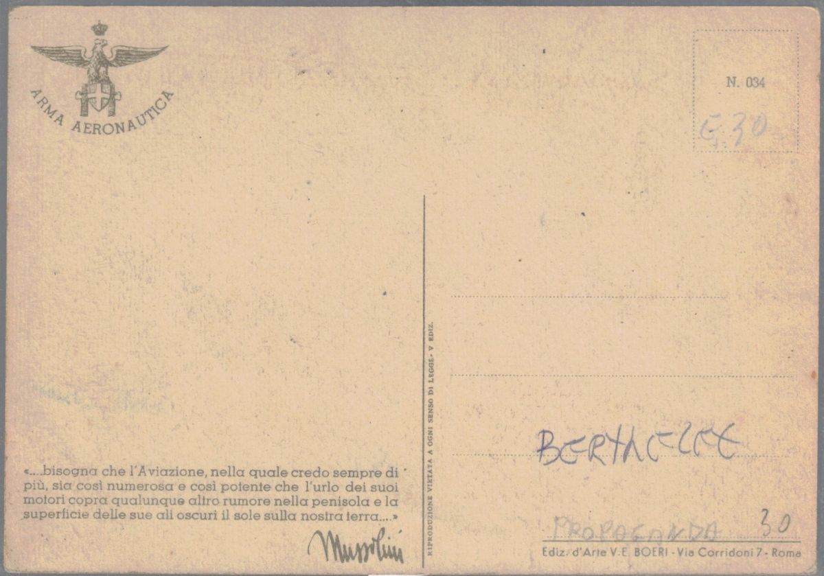 The Auction House Art La Rosa offers for sale postcards of the dictatorships of World War II only for the purposes of civic education and defense against unconstitutional or anti constitutional, historical, scientific and military history research. The bidder undertakes to purchase these works for historical and scientific reasons and for those mentioned above and not for propaganda purposes.
