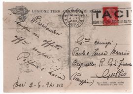 Original postcard of the Royal Carabinieri Legion of Bari, 40s