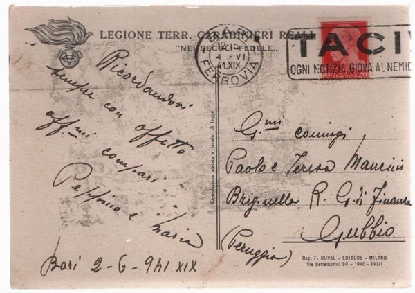 The Auction House Art La Rosa offers for sale postcards of World War II dictatorships only for the purpose of civic education and defense against unconstitutional or anti constitutional, historical, scientific and military history research. The bidder undertakes to purchase these works for historical and scientific reasons and for those mentioned above and not for propaganda purposes.