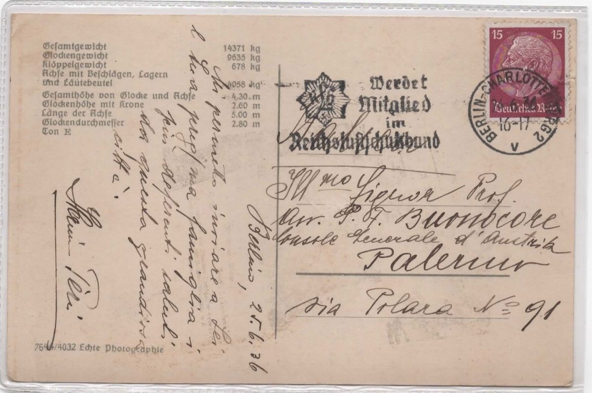 Original postcard Olympic Bell for the 1936 Berlin Olympics