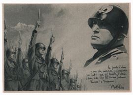 The Auction House Art La Rosa offers postcards of World War II dictatorships for sale only for the purpose of civic education and defense against unconstitutional or anti-constitutional acts, of historical, scientific and military history research. The bidder undertakes to purchase these works for historical and scientific reasons and for those mentioned above and not for propaganda purposes.