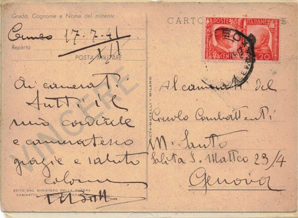 The Auction House Art La Rosa offers for sale postcards of the dictatorships of World War II only for the purposes of civic education and defense against unconstitutional acts or anti-constitutional, of historical, scientific and military historical research. The bidder undertakes to purchase these works for historical and scientific reasons and for those mentioned above and not for propaganda purposes.