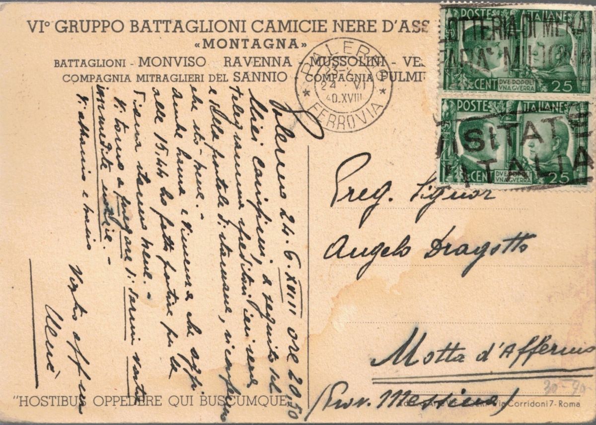 Illustrator Manlio D'Ercoli. Traveled 24/06/1940.