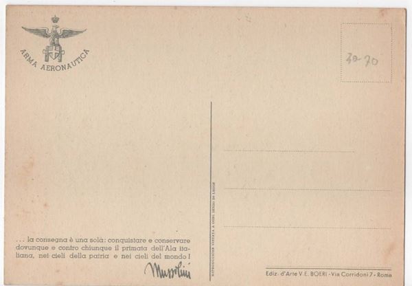 The Auction House Art La Rosa offers for sale postcards of the dictatorships of World War II only for the purpose of civic education and defense against unconstitutional or anti-constitutional acts, historical and scientific research and military historian. The bidder undertakes to purchase these works for historical and scientific reasons and for those mentioned above and not for propaganda purposes.