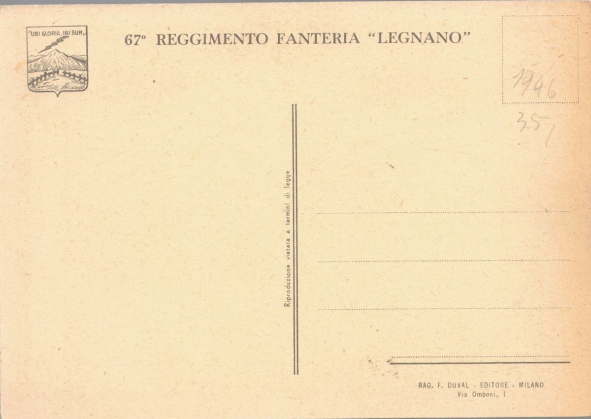 Postcard 67 Legnano Infantry Regiment 1946-1958