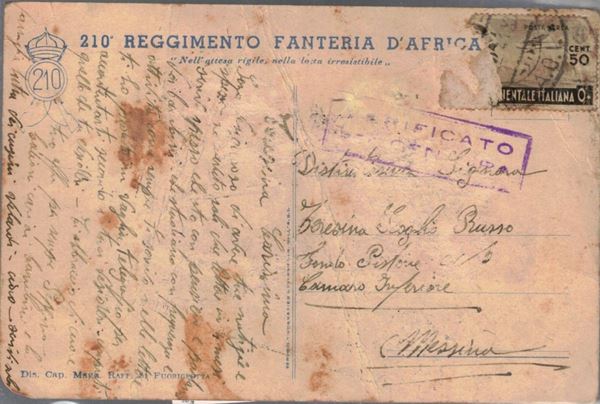 "in watchful waiting, in irresistible struggle" Dis. Cad. Maj. Raff. Fuorigrotta. Used, stains and creases. Traveled.