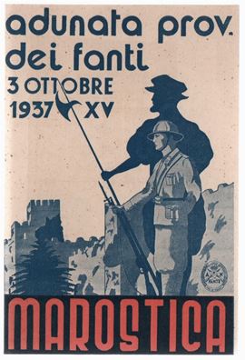Rare original postcard from Prov. dei Fanti 3 October 1937- Marostica, 40s