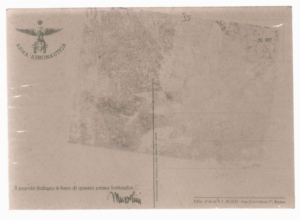 The Auction House Art La Rosa offers for sale postcards of the dictatorships of World War II only for the purposes of civic education and defense against unconstitutional or anti-constitutional acts, for historical and scientific research and military historian. The bidder undertakes to purchase these works for historical and scientific reasons and for those mentioned above and not for propaganda purposes.