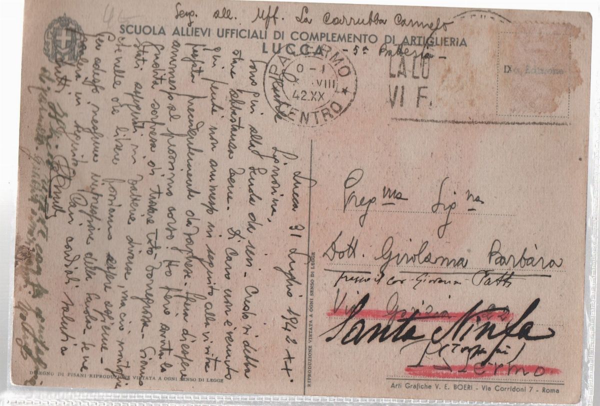 Illustrator Vittorio Pisani (1899-1974). Traveled 1942. No postage stamp. VEBoeri art edition - Rome.
