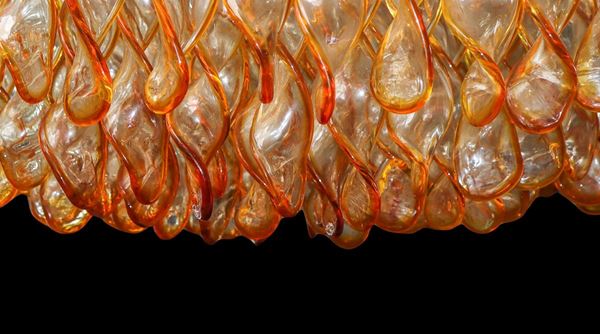 Circular shape and elements in transparent torchon glass with finishing along the edges in shades of amber. Perfect condition.