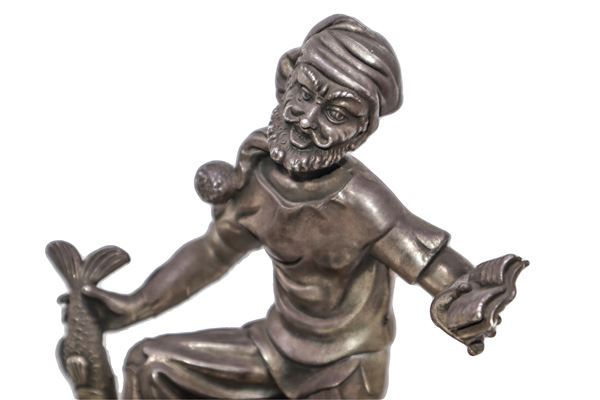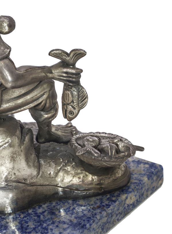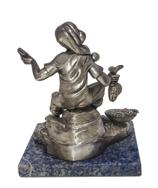 Sculpture covered in silver foil, with marble base.