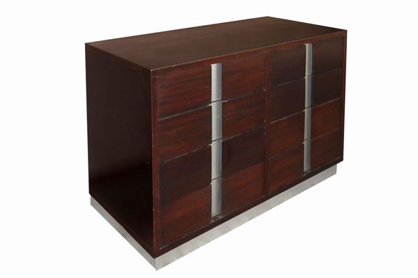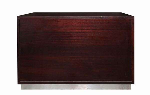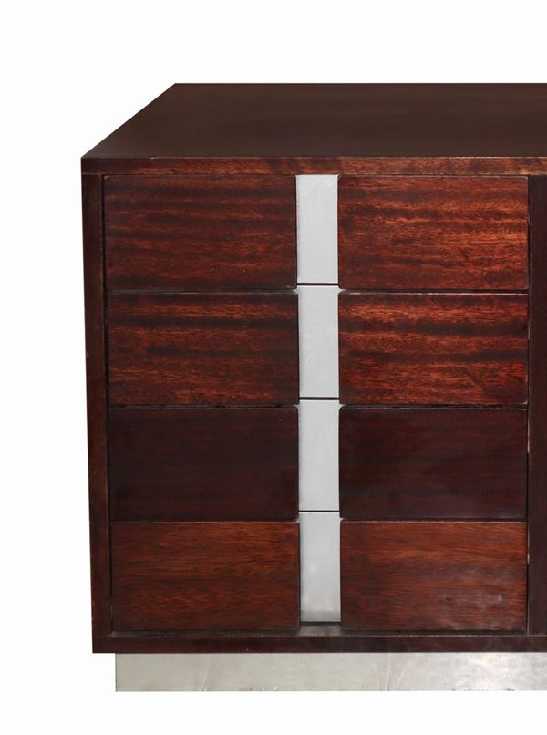 With plywood structure covered in rosewood. Details in satin aluminum. Present s each of use