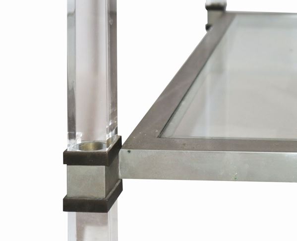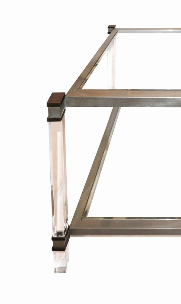 Coffee table with transparent plexiglas nickel-plated metal structure, 60's