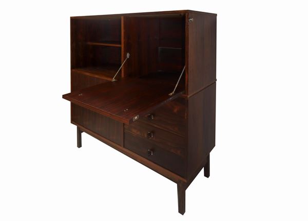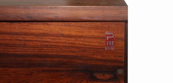 With multi-layered structure in rosewood. Details in satin aluminum, with signs of use.