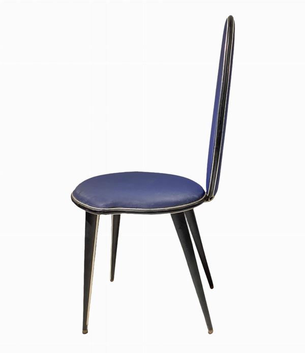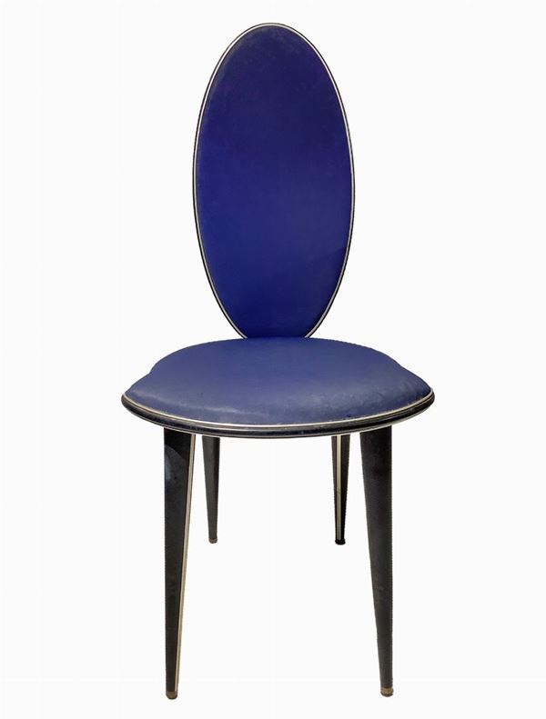 Truncated conical feet, wooden frame, imitation leather upholstery, edges in bitten aluminum. Small defects in use. & Nbsp;