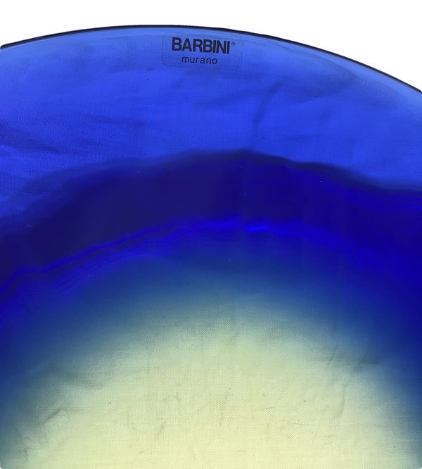 Large centerpiece in blue Murano glass, signed Barbini Murano.