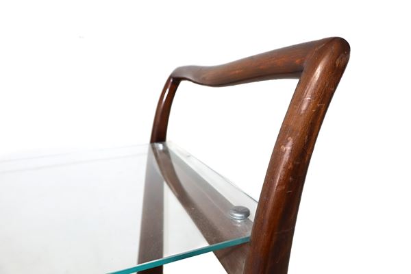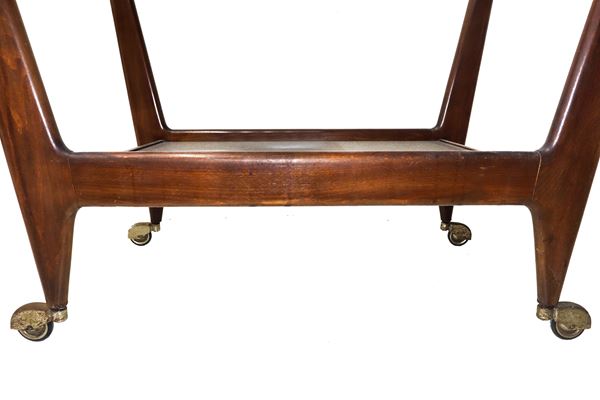 Trolley in beech wood with acrylic finish and glass top, 50s