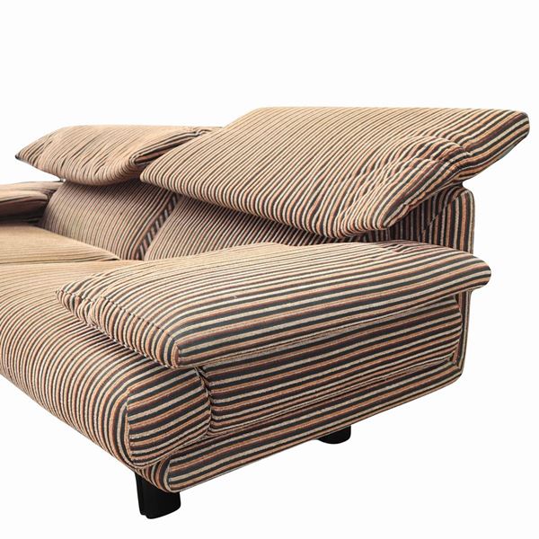 MaxAlto, drawing by Paolo Piva. Upholstery in fully removable polychrome ribbed fabric. Reclining armrest and headrest. Signs of use and stains.