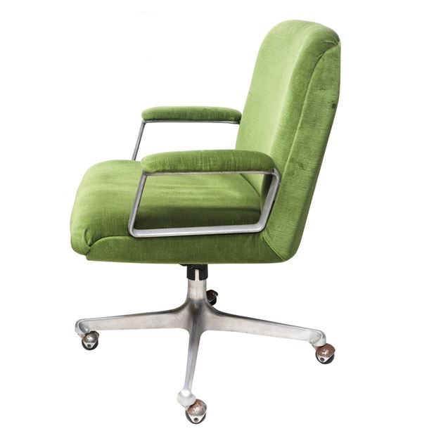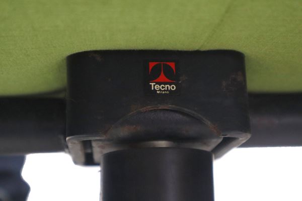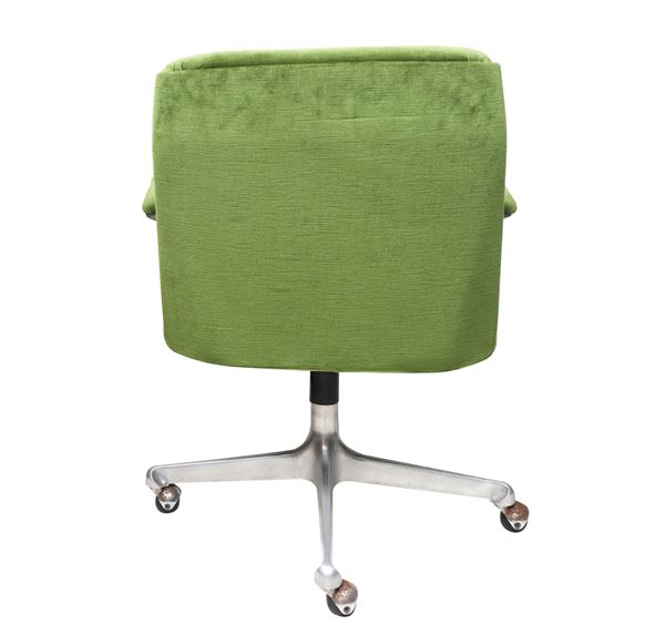 Die-cast aluminum and contemporary fabric cover in shades of green.