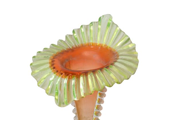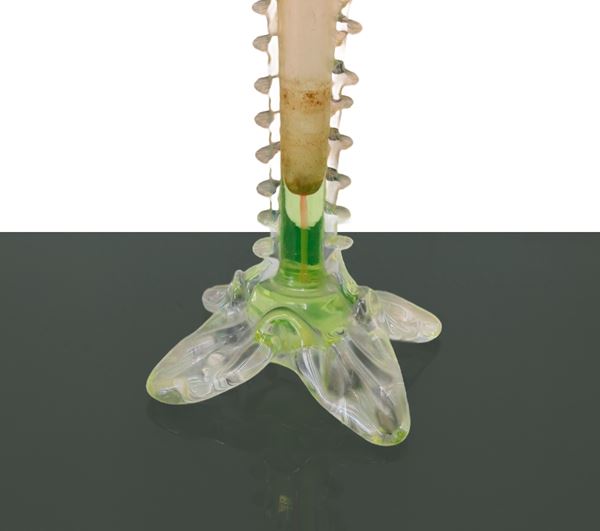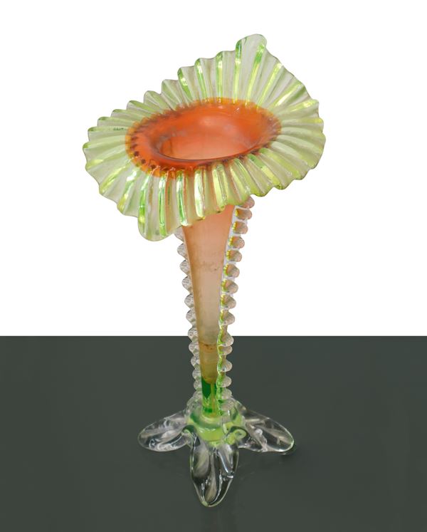 Like a calla lily, in polychromy and phytomorphic applications at the base and along the stem.