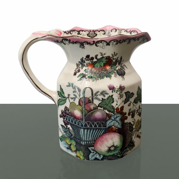 Carafe with fruit basket in shades of white and pink