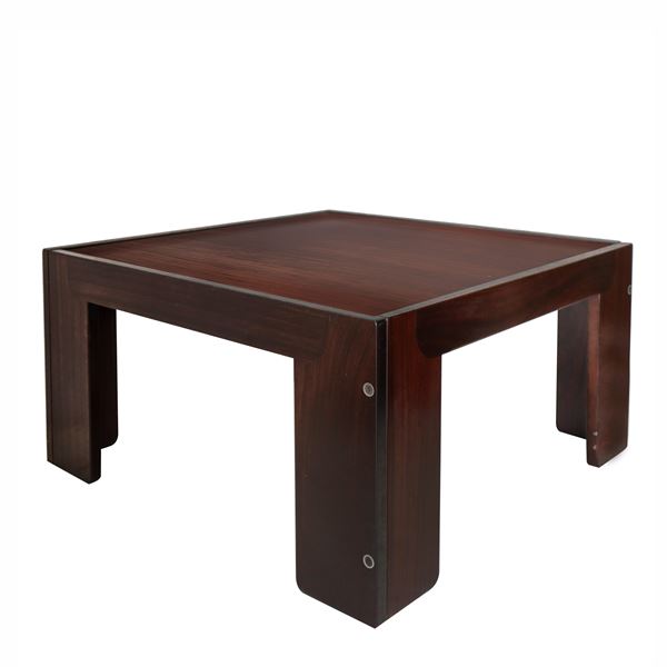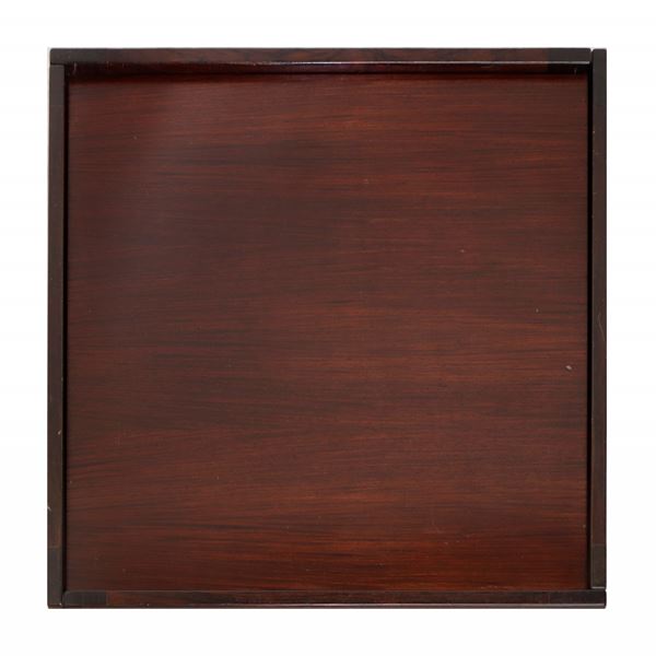 Prod. Cassina Dis. A&T Shoe. Rosewood veneered wooden structure, removable top, fully disassembled, Signs of use