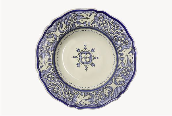 Composed of: N. 24 dinner plates, 12 soup plates, 10 dessert plates, 2 salad bowls, 1 tureen, 3 large serving plates, 2 serving plates, 1 gravy boat, 1 jug. oil cruet, 2 salt and pepper, 1 cheese bowl and matching doily.