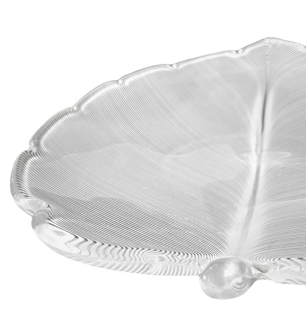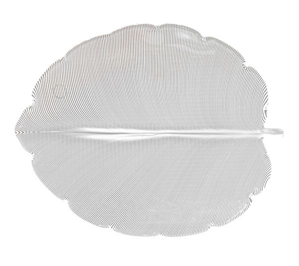 In shades of transparent with filigree applications in shades of white. Indentation along the edge.