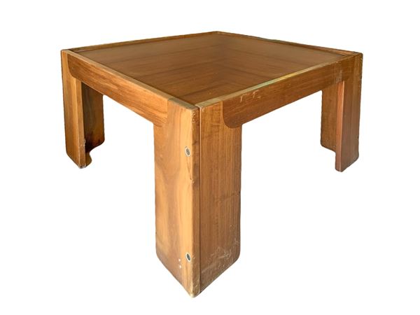 Designed by Afra and Tobia Scarpa, structure in walnut with geometric motif joints. Walnut wood top
