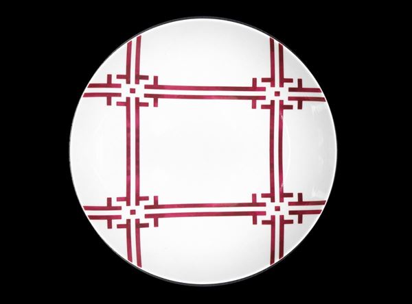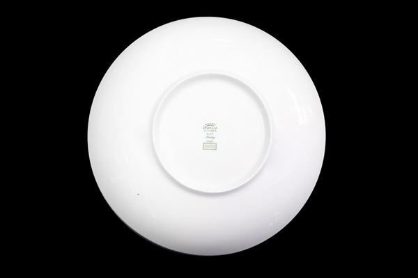 Service composed of: 9 soup plates, 13 dinner plates, 12 fruit plates, 1 tureen, 1 round serving plate, 1 ravier, 1 oval serving plate, 1 salad bowl